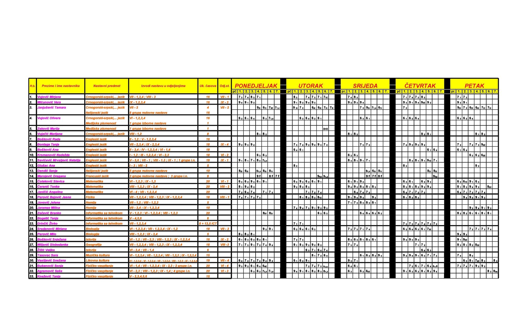 Lista izbornih predmeta i slobodnih aktivnosti: